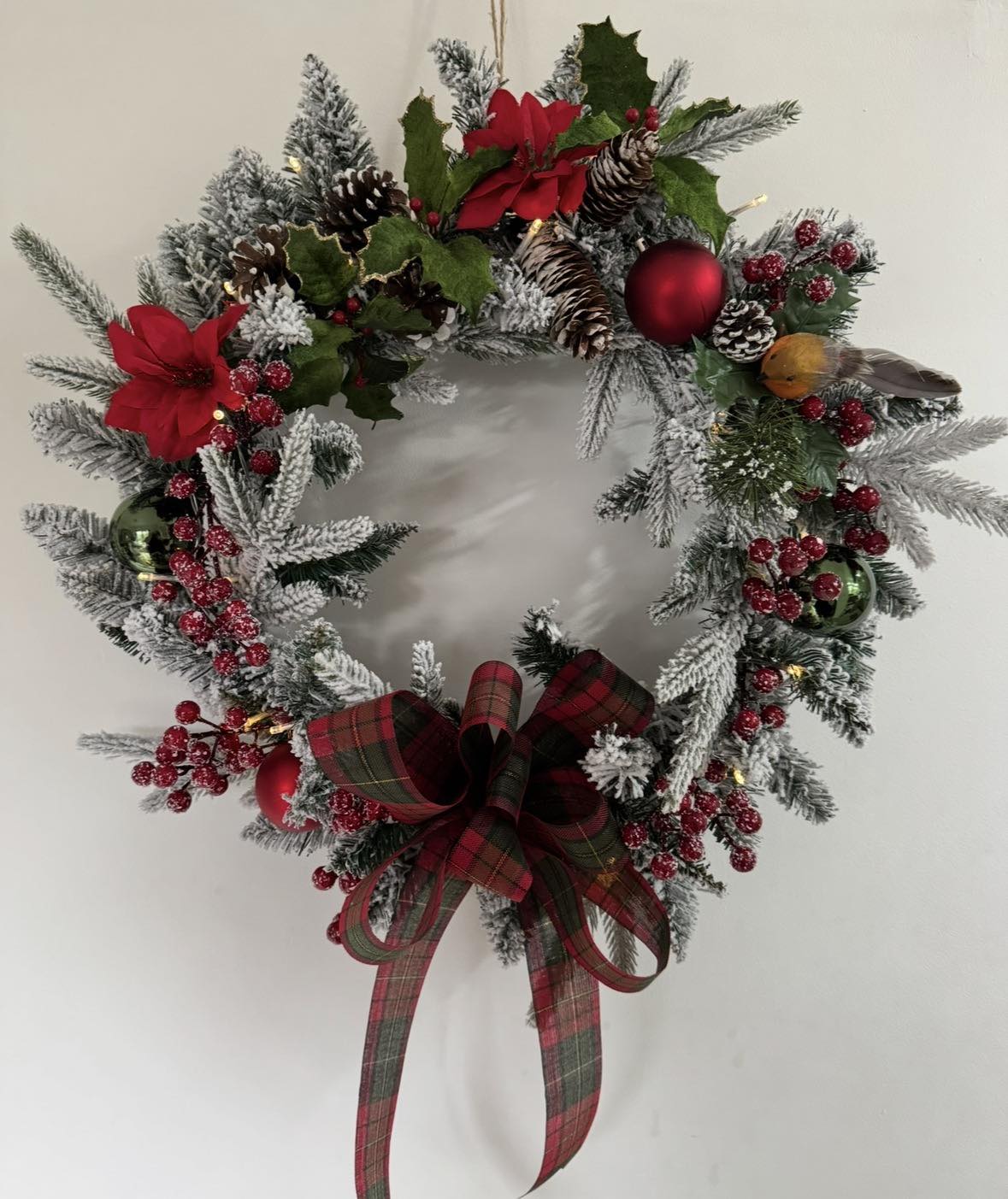 Snowy tartan wreathFrosted winter look